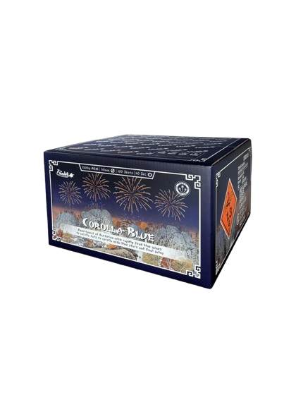 Glem alt om forspil, blide berøringer og stor variation. Med Corolla Blue skyder du krudtet af på kun 40 sekunder. Og vi snakker om 2,5 kg. NEM her! Fyld himlen med 100 skud af størst kaliber og nyd synet af en himmel, der er fuldstændig oplyst af guld og blå. Det her er et compound, der ligner et professionelt set-up.