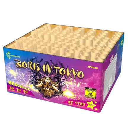 Oplev ren fyrværkerimagi med Boris in Tokyo – et kraftfuldt og nyskabende 97 skuds compoundbatteri fra J-Fireworks.