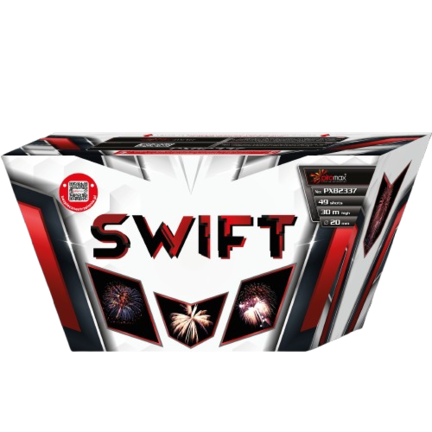 Swift er et mellemstort turbo-batteri med fed effekt og klare farver. 49 skud sendes op i 7 serier og skyder nytåret ind i sikker stil. Bestil det nu på krudtgaarden.dk og få det til en pris, som de misunder i Polen.