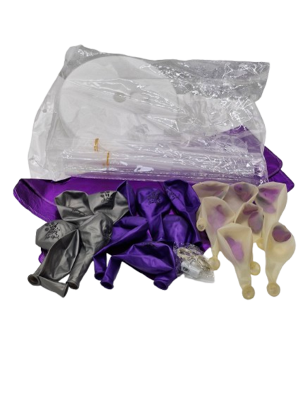Den ultimative ballonbuket med hvide og lilla balloner og LED wire. Skal ses!