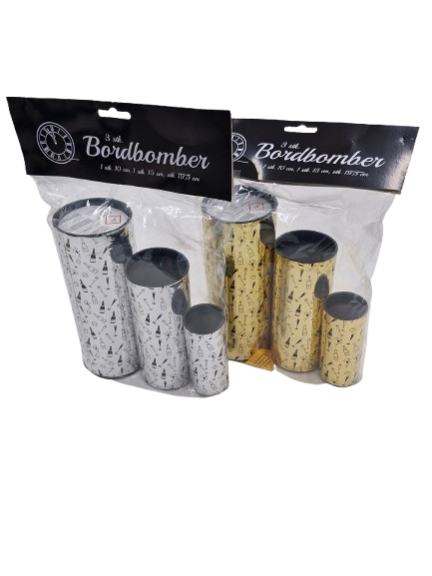 Bordbombe festpakke med 3 forskellige størrelser. Vælg mellem sølv eller guld.