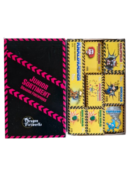 Indeholder forskellige små jordsole, knaldperler, skøre kugler, discolys og knaldkæder