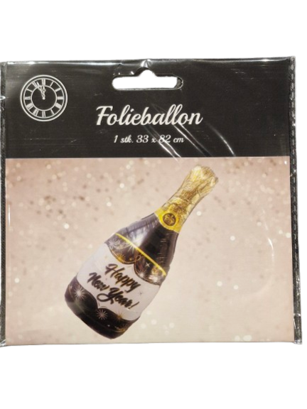 Flot folieballon m. flaske til en pris, hvor proppen er røget af.