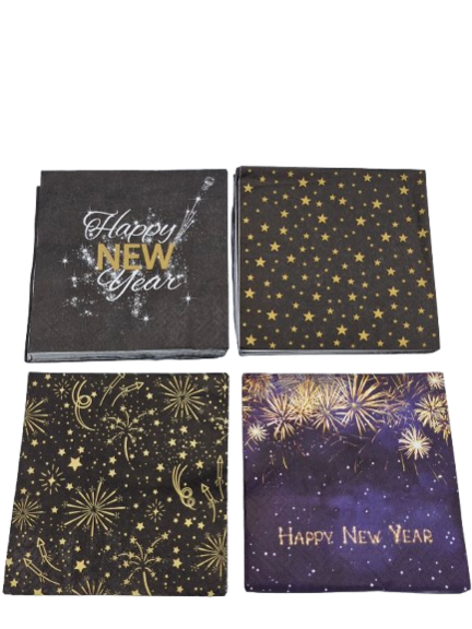Store nytårsservietter med print. Pakke med 20 stk. Vælg mellem 4 varianter.