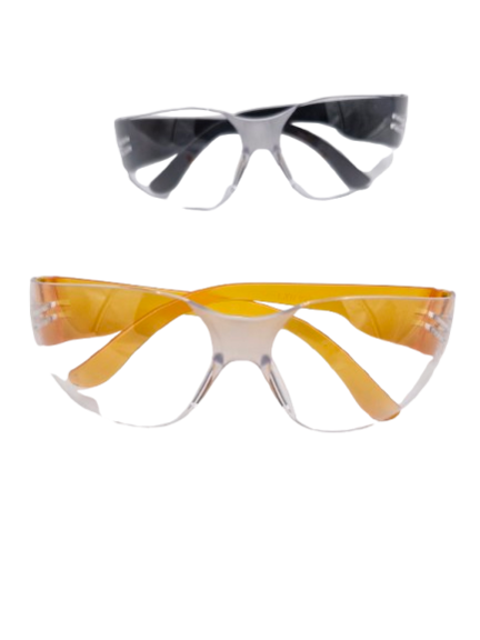 Beskyttelsesbriller til voksne - for en sikkerheds skyld. Vælg mellem sort og orange